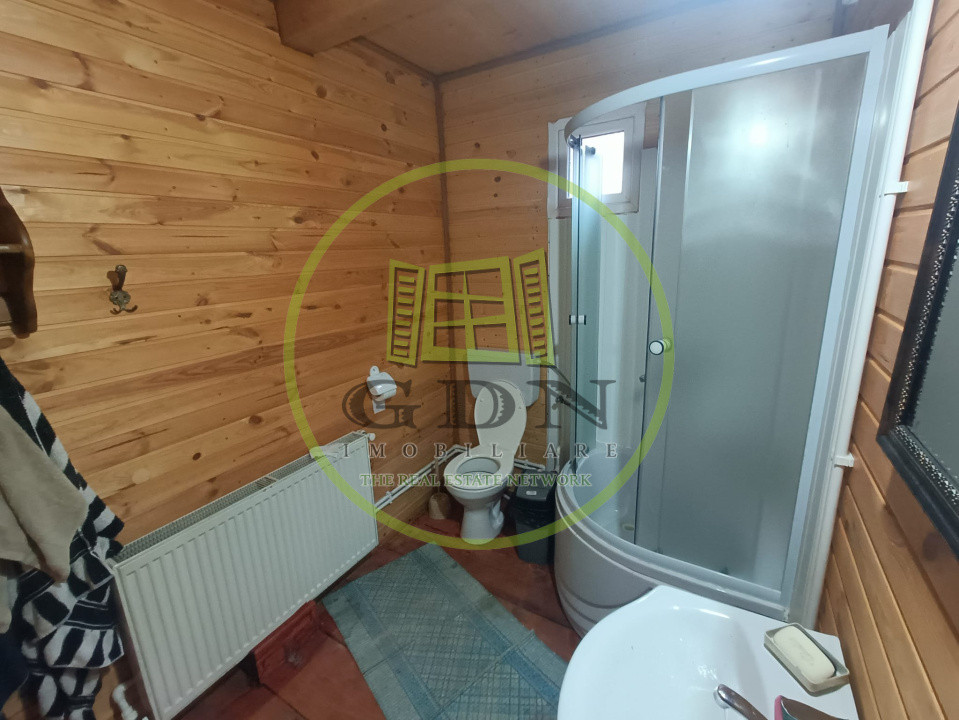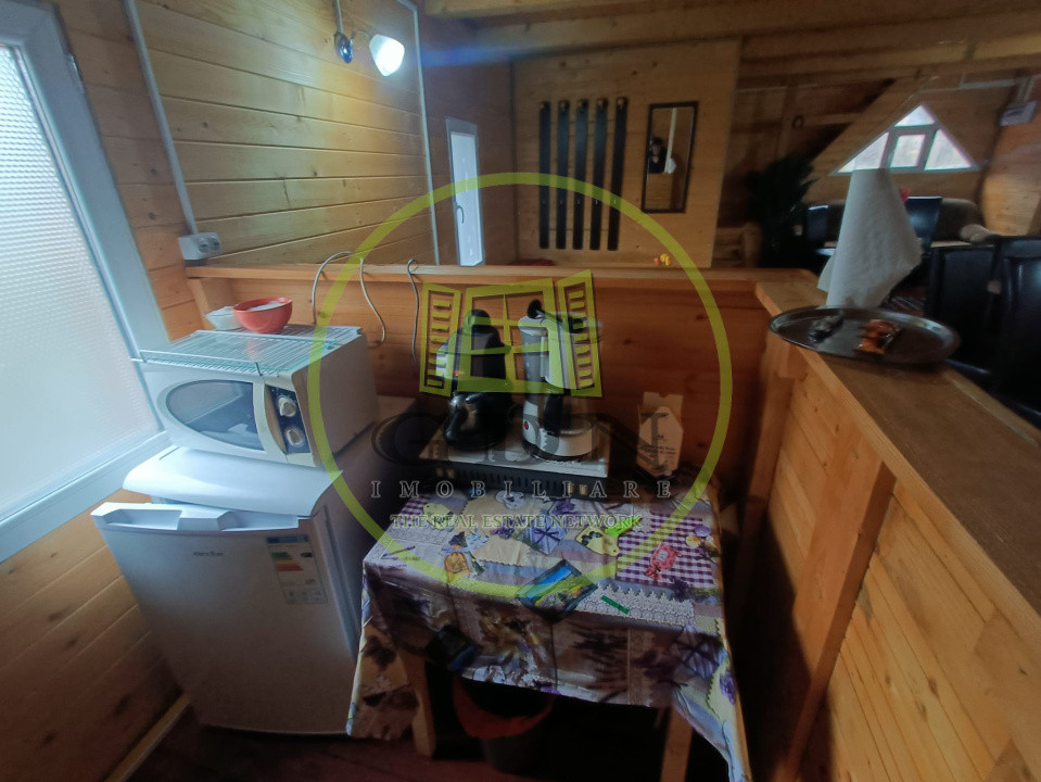 Aceasta are în compunere la parter cu living, bucătărie, 3 dormitoare, 0 băi, o terasă generoasă; la etaj avem un hol living, un dormitor deschis - studio și un balcon cu o panoramă frumoasă., iar în spatele cabanei se află o terasă, grătar și un ciubăr.
