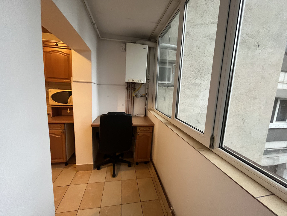 Acest imobil decomandat cu o suprafață de cca 30 mp este cu expoziție estică oferind lumină naturală, este complet mobilat ,dispune de bucătărie cu aragaz/hotă, centrală termică proprie , cuptor cu microunde, frigider iar baia cu cadă este si locul unde regăsim mașina de spălat rufe. .Balconul este închis și este dotat cu un birou.