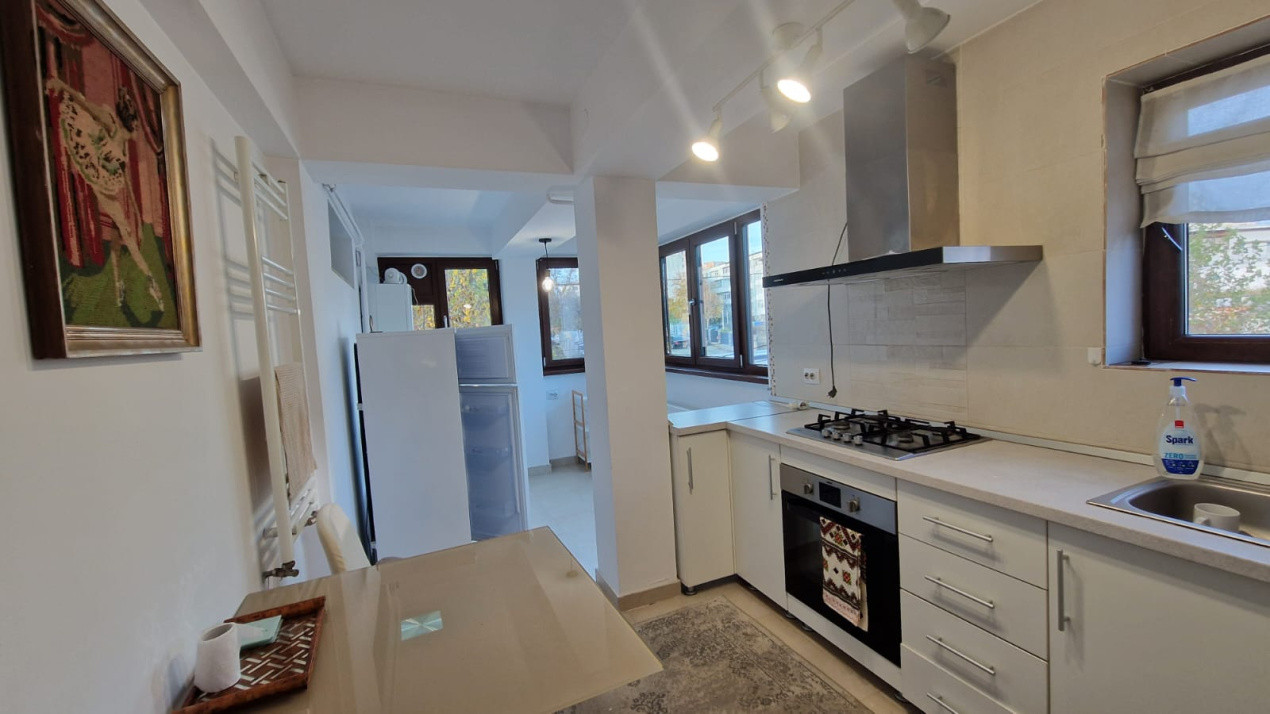 Bucătăria este complet mobilată și utilată, pregătită pentru folosire, iar baia încăpătoare oferă un plus de confort. Dressingul generos asigură spațiu de depozitare suficient, astfel încât locuința rămâne aerisită și ordonată.