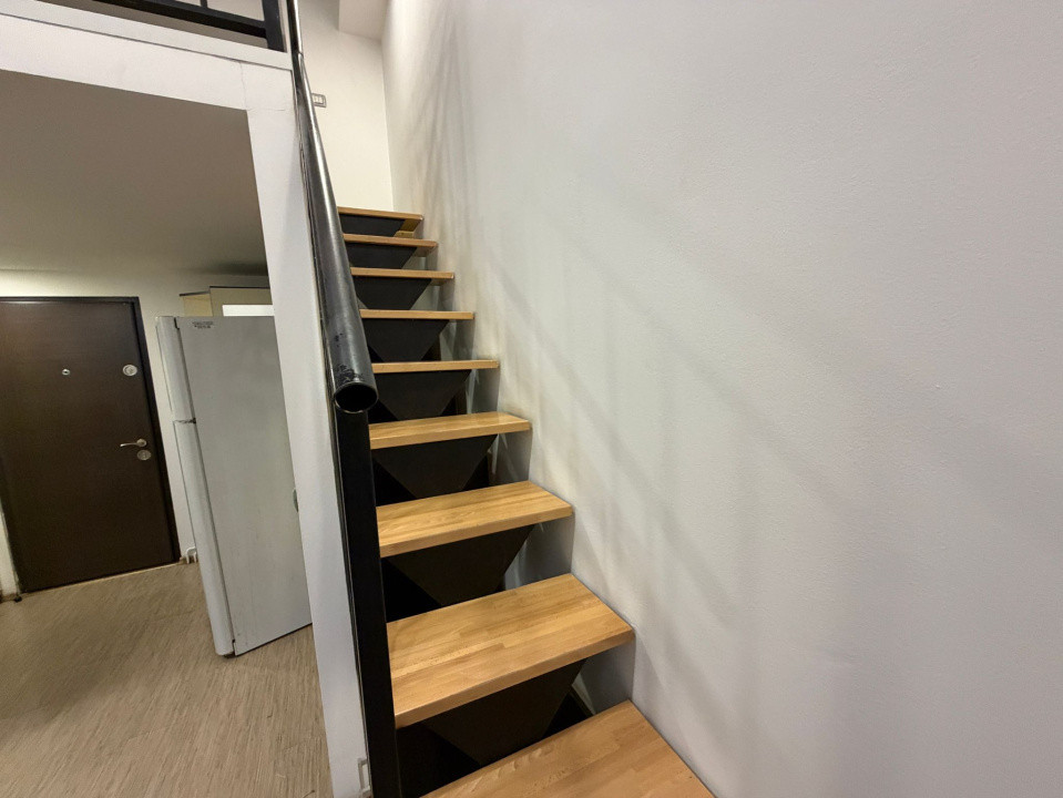 Apartamentul se află la parter și având tavan înalt a fost amenajat cu scări interioare și un dormitor la etaj. Chiria lunară este de 430 Eur sau 500 cu cheltuieli incluse.