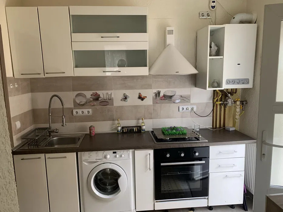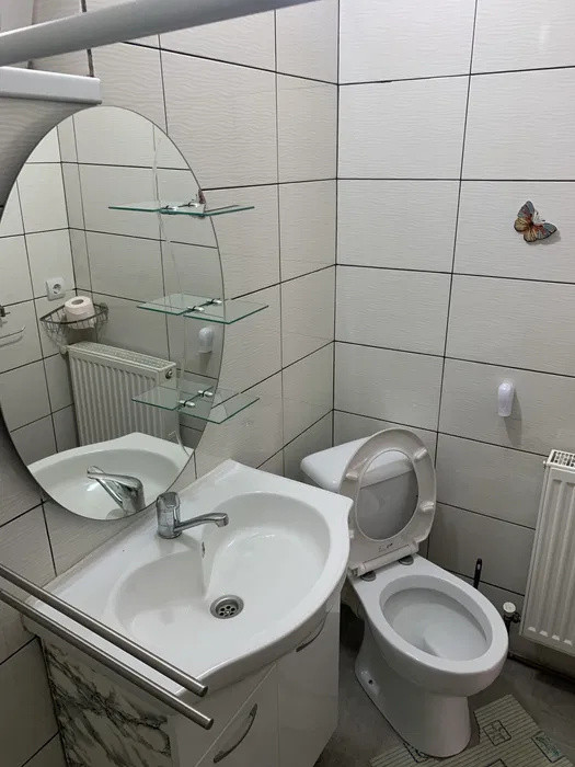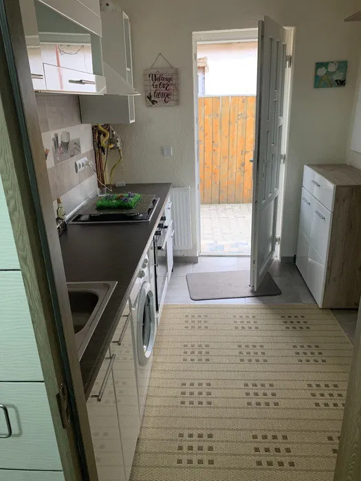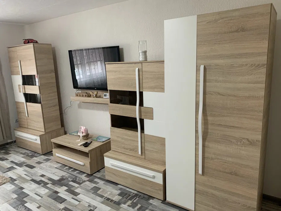 Apartamentul se inchiriaza utilat cu: plita pe gaz,cuptor electric, frigider, hota, masina de spalat rufe si televizor .