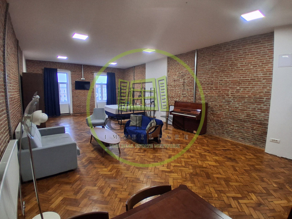 Este foarte spațios, finisat modern și se închiriază complet mobilat și utilat, se potrivește și pentru spațiu de birou sau pentru locuit.