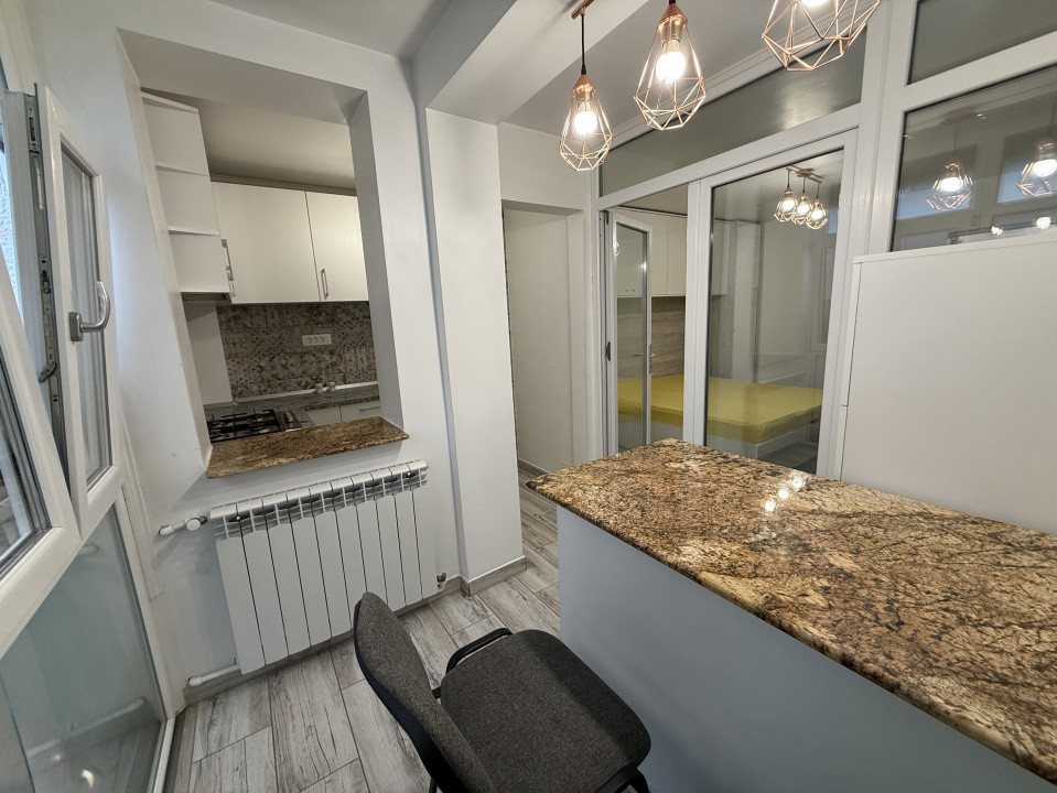 Imobilul beneficiaza de o suprafata utila totala de 31 mp, acesta fiind pozitionat la etajul 9 al unui imobil cu 10 etaje. Blocul este construit din beton fiind realizat in anul 1971. Incalzirea se face prin termoficare, aceasta beneficiaza de aer conditionat, iar garsoniera dispune de urmatoarea compartimentare: hol, baie, dormitor, balconul ce dispune de o suprafata de 6 mp si bucataria. Garsoniera este renovata complet, se vinde mobilata si utilata, fiind ideala pentru locuit sau investitie, in apropiere regasindu-se supermarket, farmacii, scoli , licee, statie de autobuz, statie taxi.