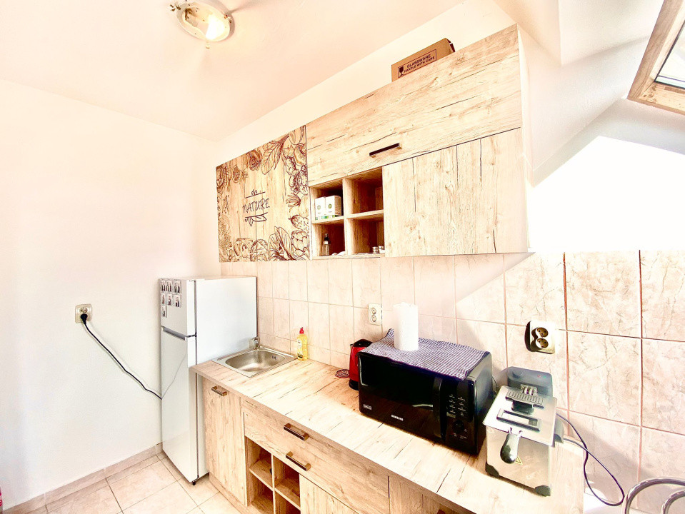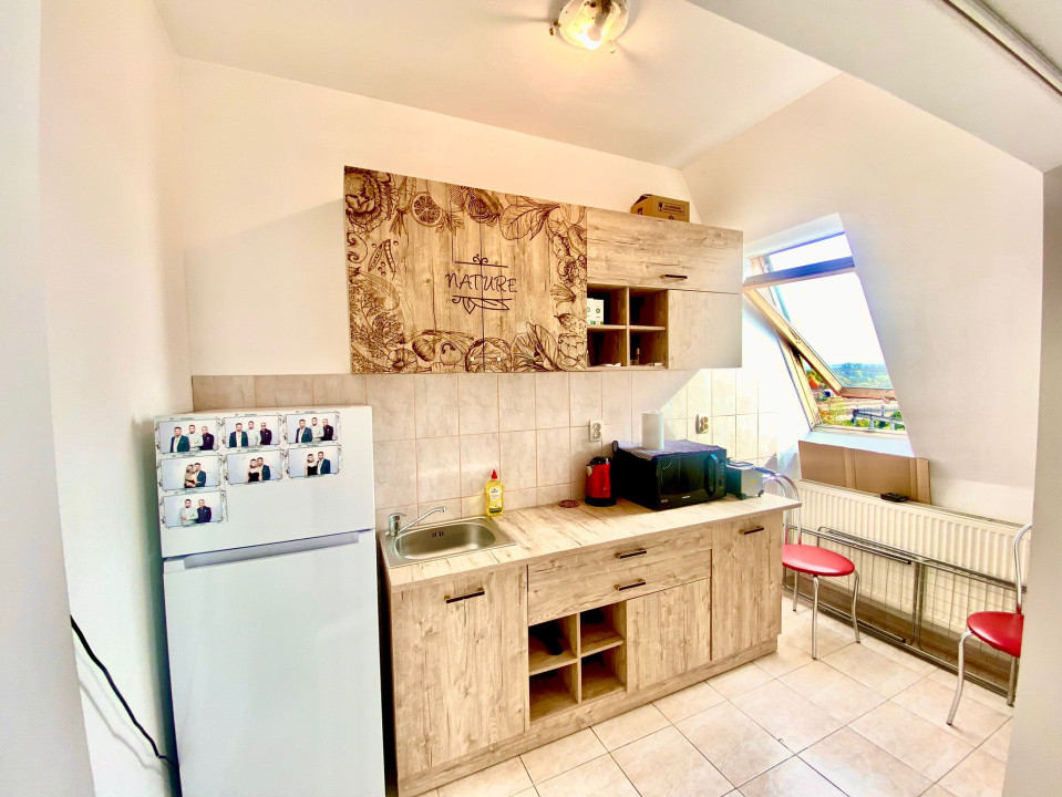 - bucătărie open space mobilată și utilată, împreună cu loc de luat masa