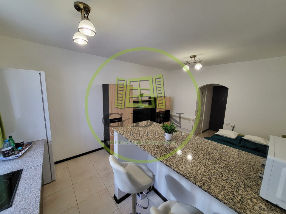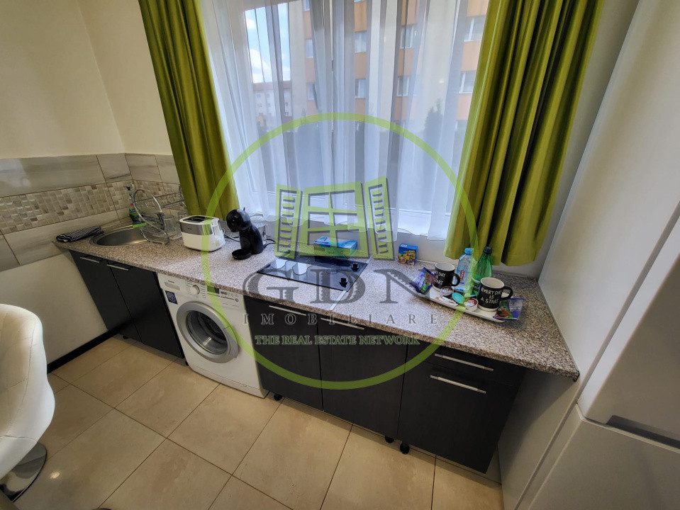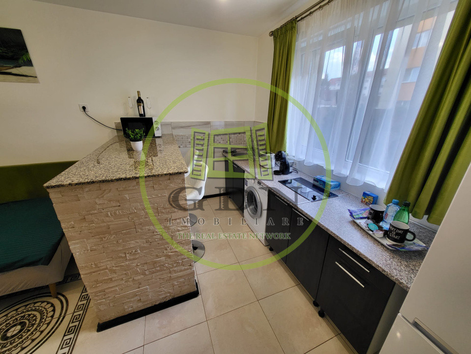 - Bucatarie complet mobilata si utilata, plita pe inductie, mobilier la comanda, frigider, cuptor cu microunde , zona de dinning, masina de spalat rufe