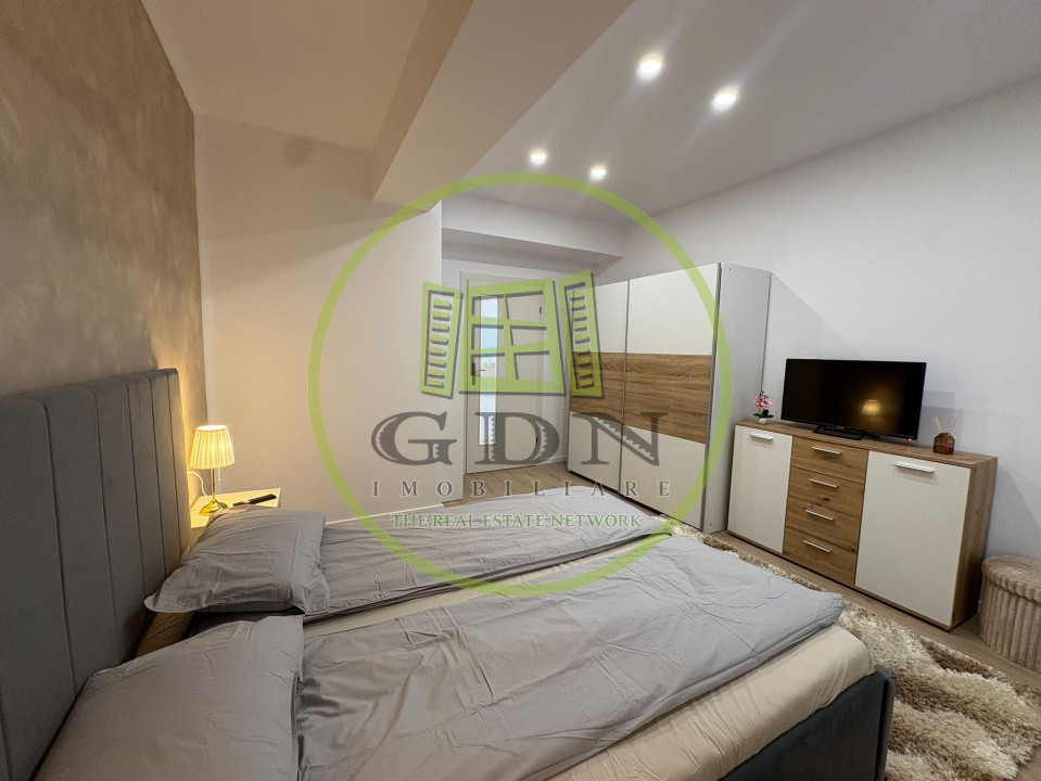 GDN Elite Imobiliare va propune spre inchiriere un apartament de 2 camere decomandat, cu o suprafață de 58 mp, situat la parterul unui bloc cu 6 etaje, în cartierul 1 Mai, zona Confecții. Locuința este compartimentată eficient și cuprinde hol, living spațios, dormitor, bucătărie și baie. Bucătăria este complet utilată, fiind dotată cu frigider, plită electrică, hotă, mașină de spălat haine, cuptor electric și cuptor cu microunde, oferind tot confortul necesar pentru un trai modern. Apartamentul dispune de centrală termică proprie și aer condiționat, asigurând un climat optim pe tot parcursul anului.