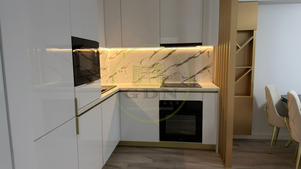 Locuința se va preda viitorului chiriaș complet mobilată și utilată: frigider, aragaz cu plită electrică, hotă,, internet, aparat de aer condiționat, tv, mașină de spălat rufe, mașină de spalat vase, senzori de alarmă și de fum.