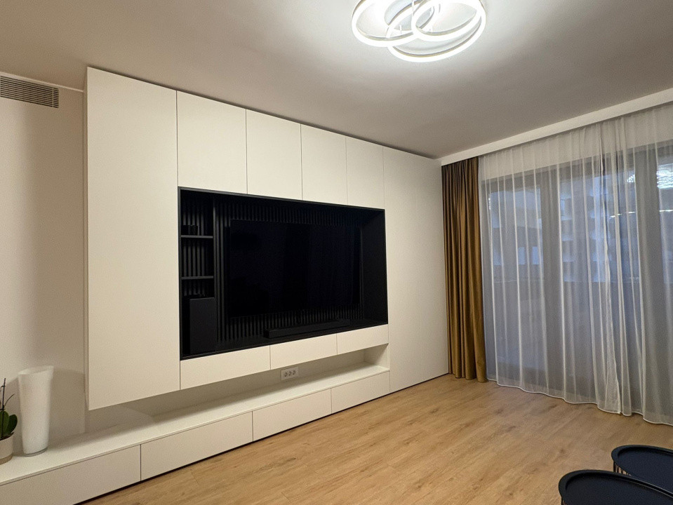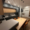 Apartamentul este mobilat și utilat lux. Utilități: centrală termică, încălzire în pardoseală, aer condiționat, plită electrică, frigider, mașină de spălat haine și uscător haine, cafetieră, cuptor încorporat, hotă, cuptor cu microunde, televizoare.