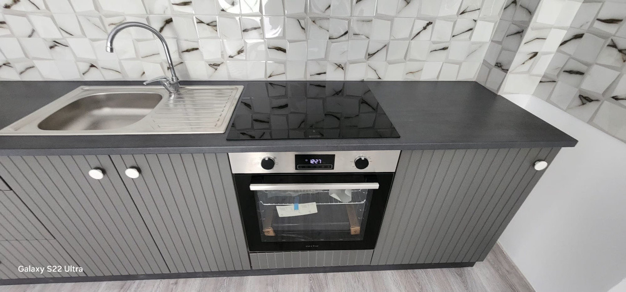 Living generos + dormitor, bucătărie deschisă complet mobilată și utilată (plită, hotă, mașină de spălat)