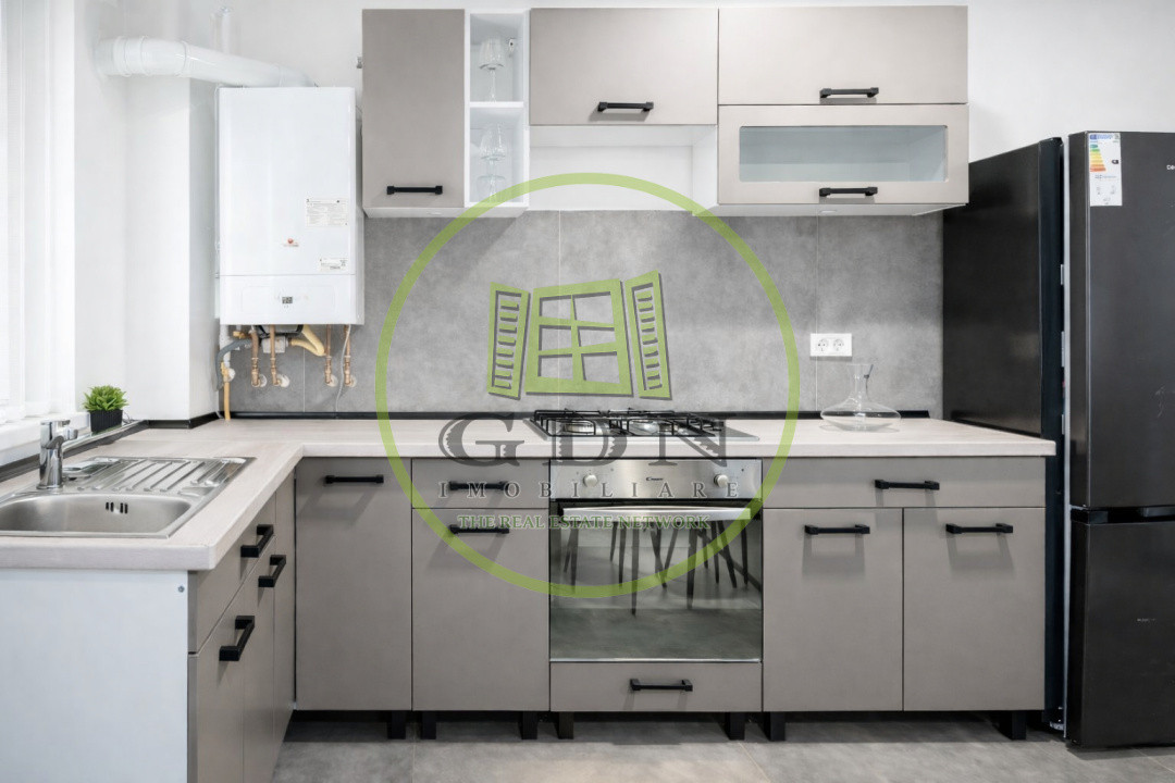 ✔ Bucătărie modernă echipată (plită, cuptor, frigider)