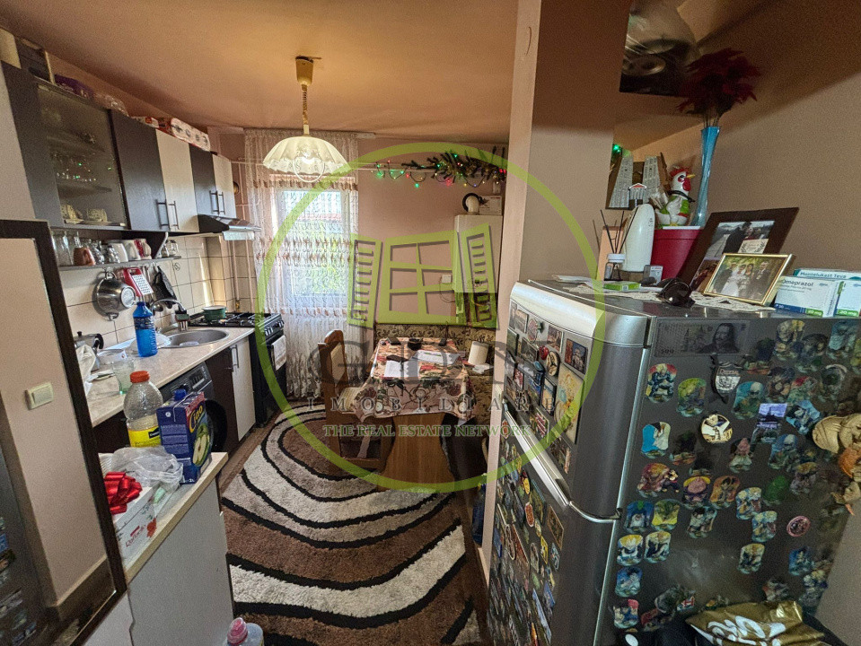 Imobilul este impartit astfel, hol la intrare din care ne facem accesul in bucatarie, iar tot din hol ne facem trecerea catre primul dormitor . Apartamentul dispune de centrala termica montata, si un aer conditionat nou.