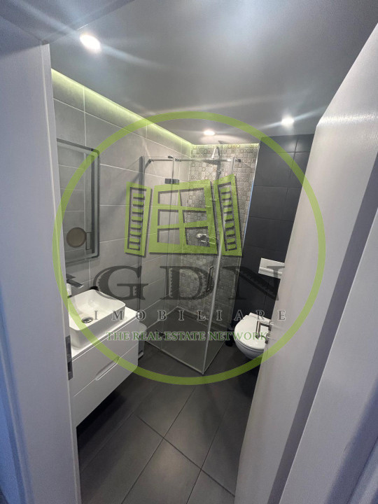 Apartamentul este finisat are tamplarie din termopan, parchet, gresie si faianta cu baie finisata si utilata cu cabina de dush moderna si mobilier specific
