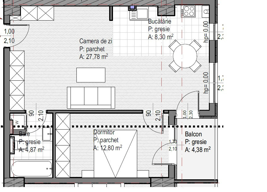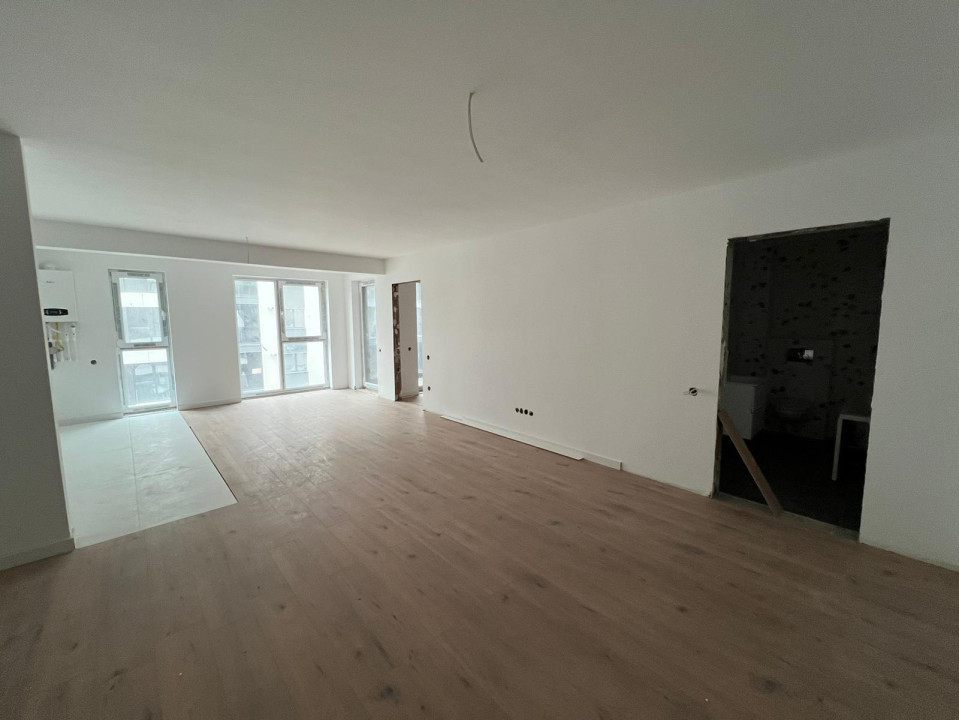 Locuința se va preda viitorului proprietar la următorul stadiu de finisare: vopsea lavabilă albă pe pereți si tavane, șapă autonivelantă si parchet laminat de 10 mm, hidroizolație, gresie si faianța la bucătărie și in baie, obiecte sanitare (inclusiv Geberit încastrat), prize, întrerupătoare si corpuri de iluminat, centrală termică si instalație de încălzire in pardoseala, ușa intrare antiefracție si uși interioare, tâmplărie PVC Salamander triplu strat.