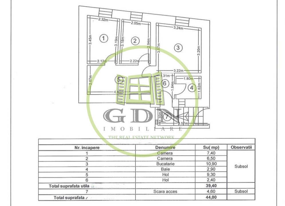 Proprietatea are o suprafață utilă de 39,4 mp, fiind împărțită astfel: