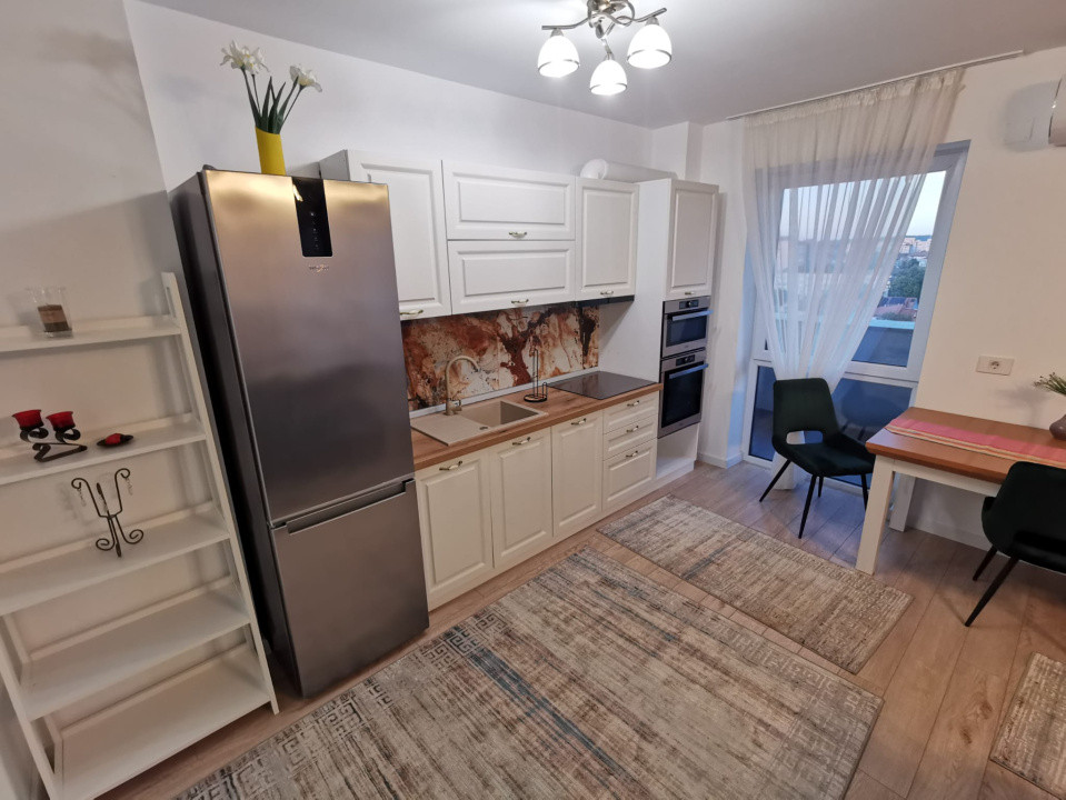 Apartamentul este amplasat la etajul 8 al unui imobil cu 8 etaje, într-un bloc cu lift, parcare subterana, parc privat in curtea blocului, bariera cu telecomanda pentru autovehicule, statie de incarcare pentru autovehiule electrice si buncar anti-atomic, finisaje premium, acces facil in zonele cheie ale orasului.