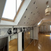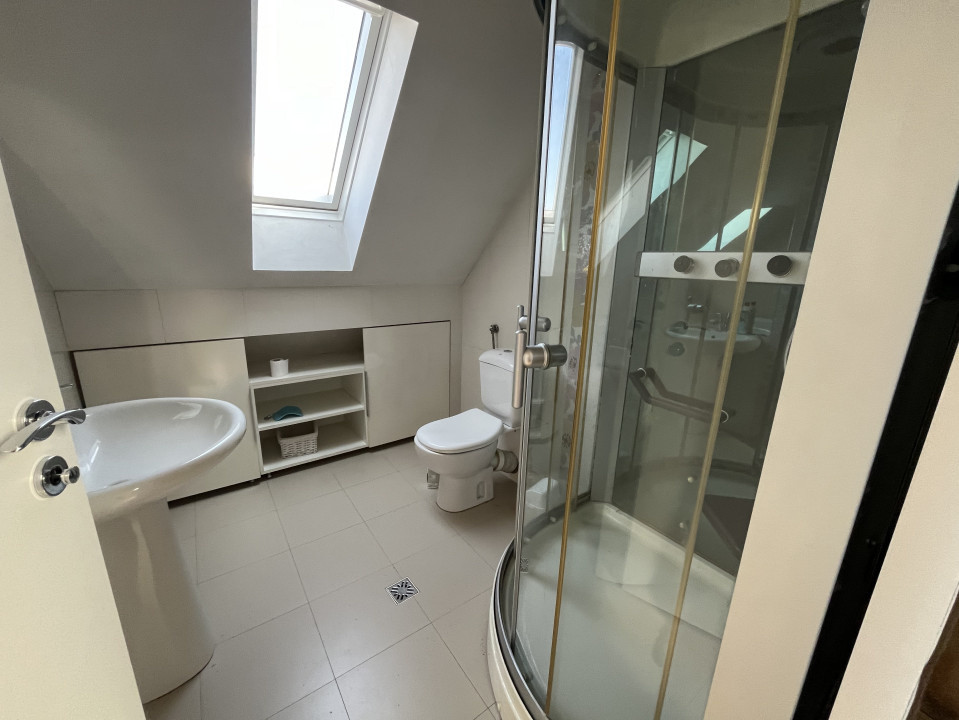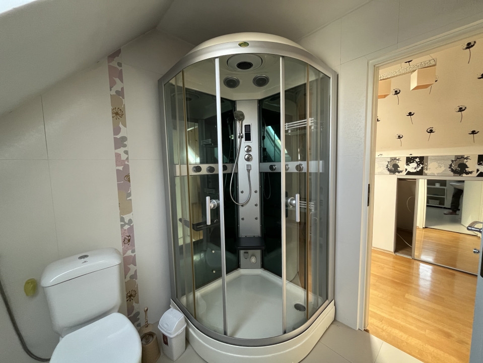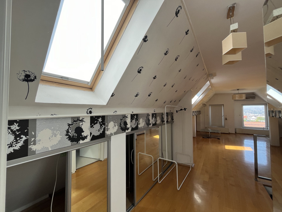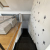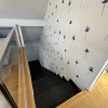-Nivelul doi : aici se ajunge prin intermediul unor scări elegante de marmura neagră și balustrada de sticlă securizată după care suntem întâmpinați de un open space tip mansarda foarte înaltă (H la coama cca 3,5 m) cu ferestre verticale si ferestre Velux care inundă spațiul cu lumină naturală . Tot aici regăsim dormitorul matrimonial și baia cu duș. Acest open space oferă multiple opțiuni de utilizare, adaptare ,modificare având deja amenajate spații de depozitare atât pentru obiecte personale cât si pentru echipamente electronice, sportive, etc.
