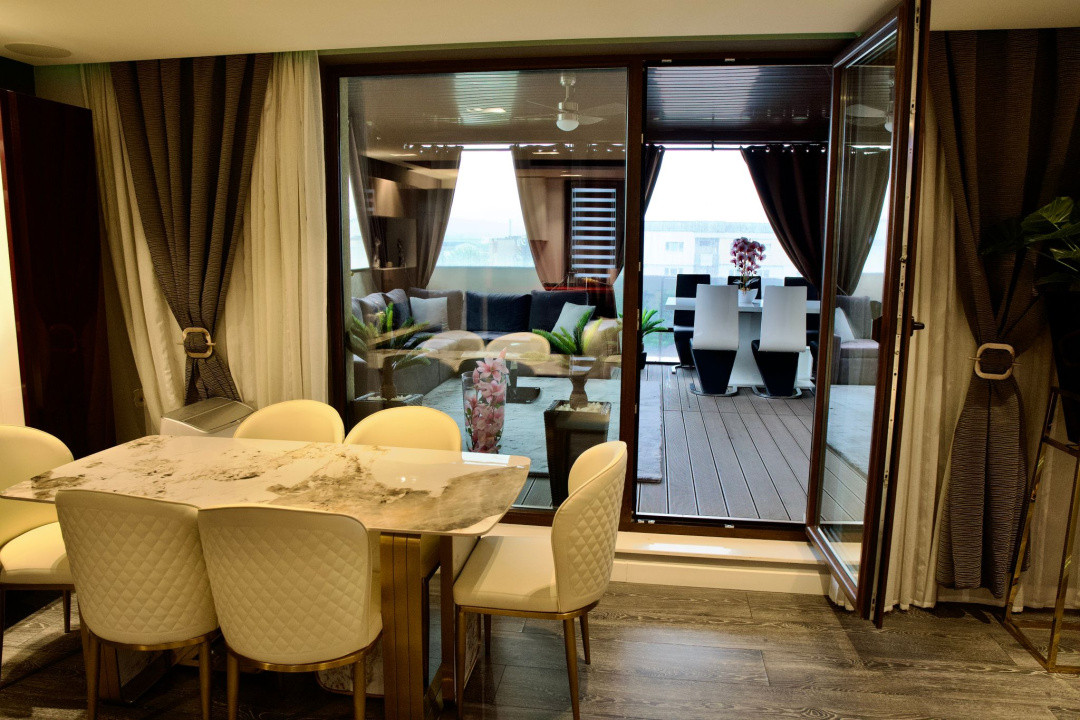 - 1 terasă panoramică generoasă de 30 mp. (închisă, ideală pentru lounge, grill și intimitate totală)
