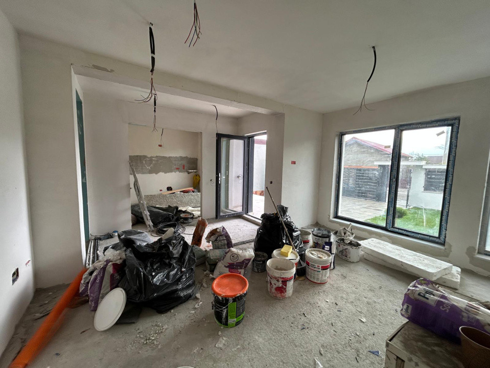 Casa este construita în anul 2025 din materiale premium, dispunand de o suprafață construită de 111 mp, o suprafață utilă de 100 mp, fiind realizata din cadre de beton, compartimentata cu BCA, fiind acoperită cu isopan si beneficiind de izolatie din polistiren de 10 cm, iar tamplaria este realizata din termopan tripan ramplast.
