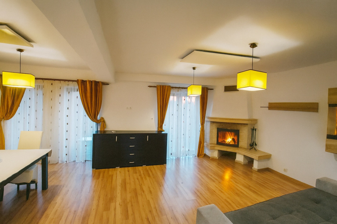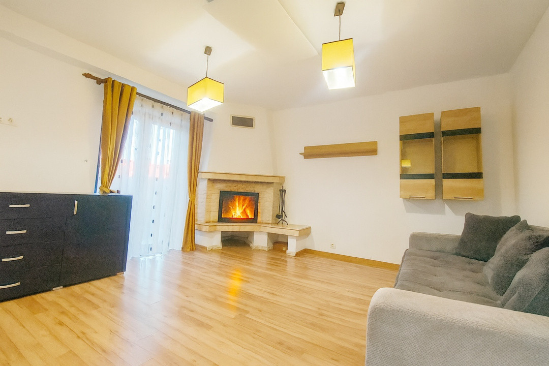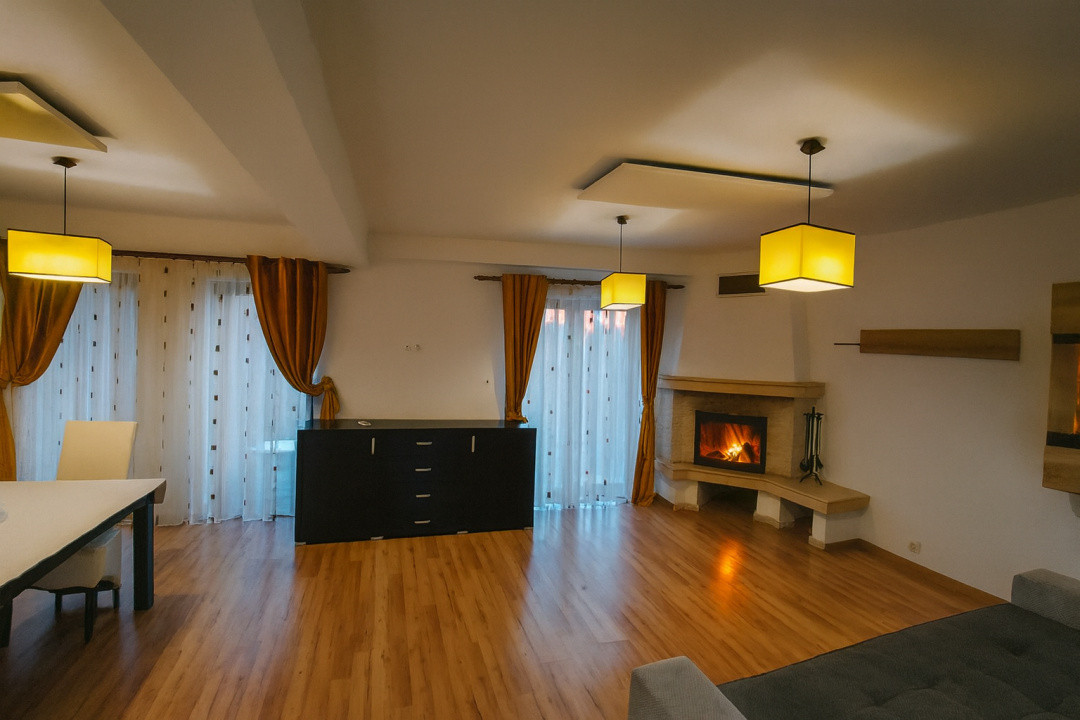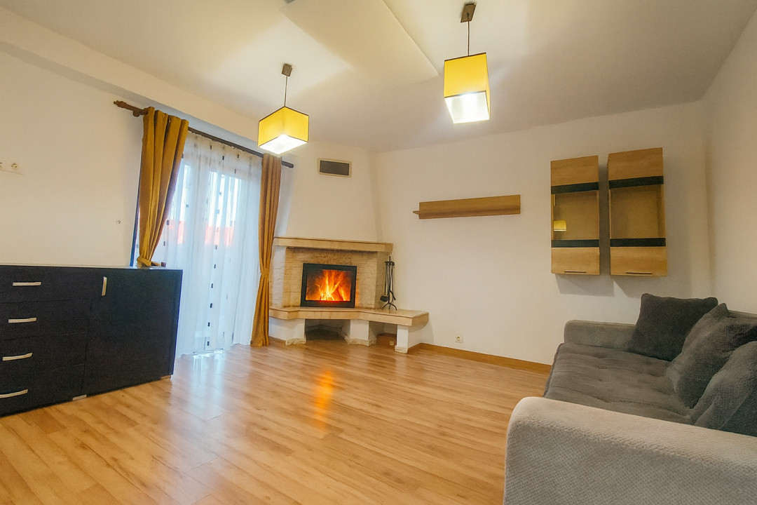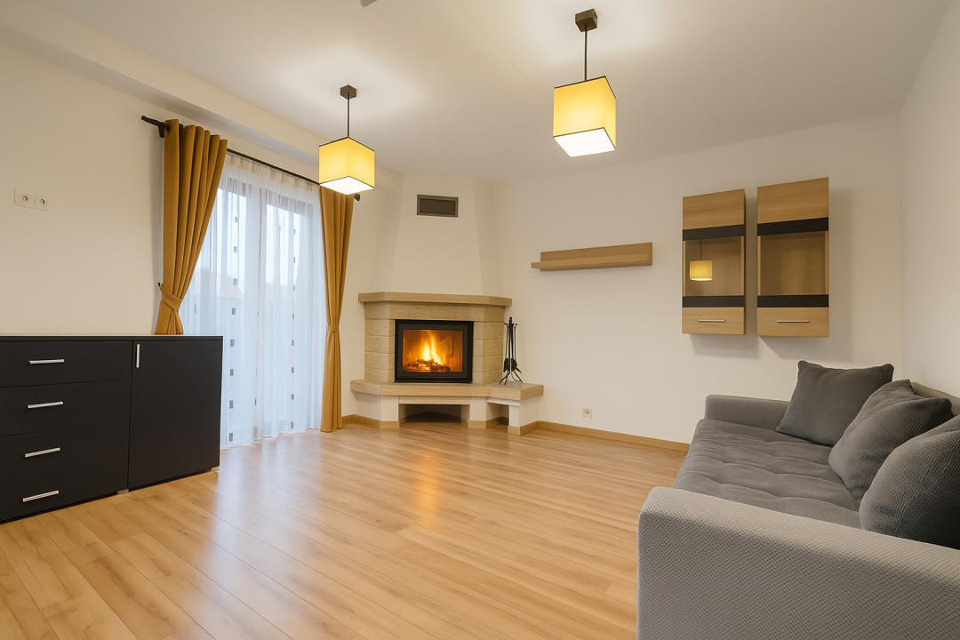 🔥 Focul din șemineu este doar un efect, dar imaginează-ți cum vei savura un pahar de vin seara, in propria ta casă.