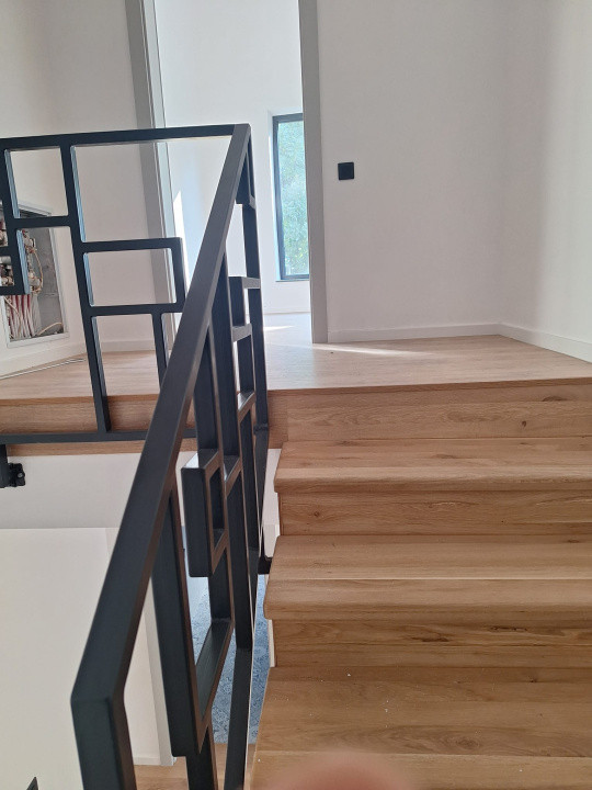 Utilități: Geamuri termopan de dimensiuni mari, de cea mai bună calitate, asigurând o excelentă izolare termică și fonică. Încălzire în pardoseală, cu termostat wireless pe fiecare nivel. Bucătăria mobilată și utilată. Poartă electrică comandată prin telecomandă și telefon.