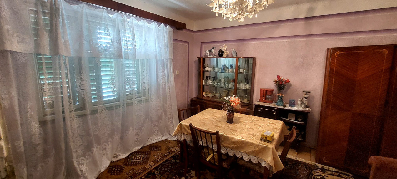 La parter avem o bucatarie mobilata si utilata si o camera spatioasa mobilata si prevazuta cu o soba de teracota.