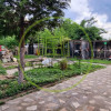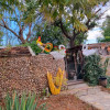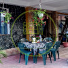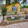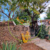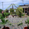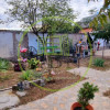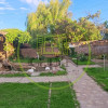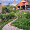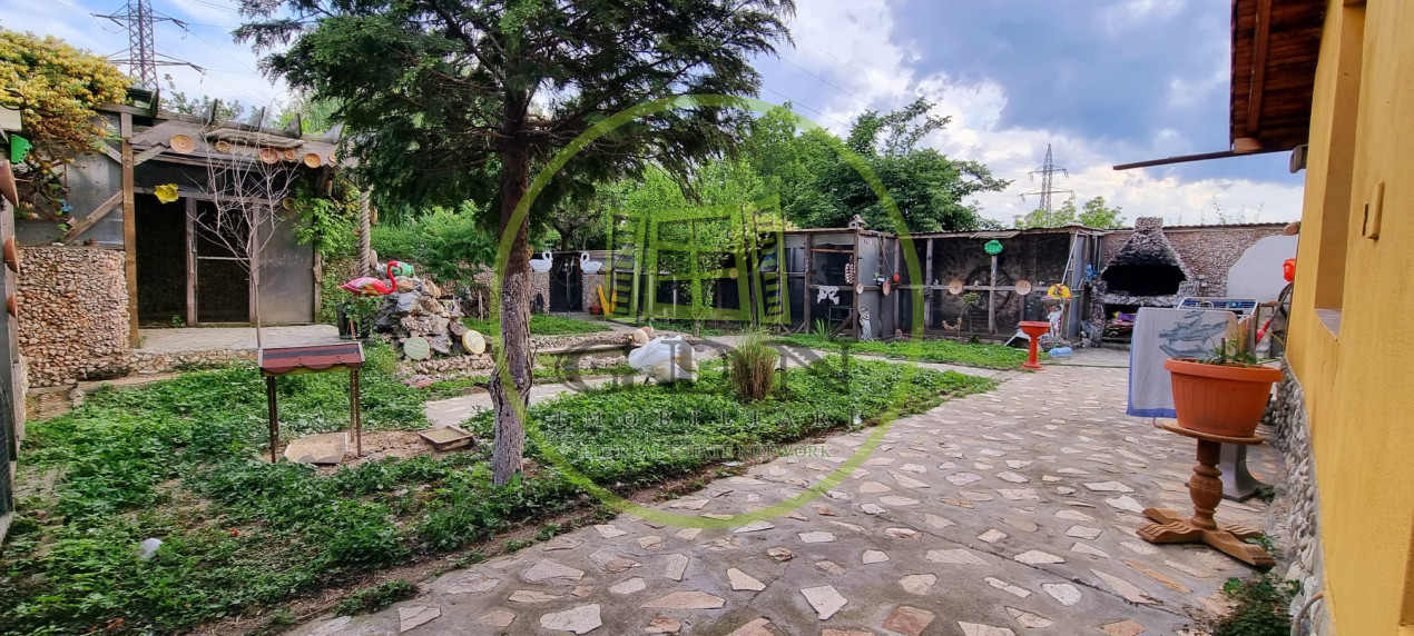 În curtea foarte frumos amenajată se mai află un garaj, 2 magazii, un wc de serviciu, 2 terase de vară cu grătar și spațiu de relaxare, piscină cu cascadă (racordată la un puț forat). Aleile sunt pavate cu piatră naturală și conduc către o frumoasă livadă cu pomi fructiferi (cireși, pruni, meri, gutui, caiși, peri).