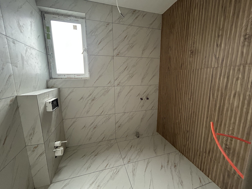 Compartimentarea casei este următoarea: la parter regasim un living spatios cu bucătărie open space, o baie ce beneficiaza de aerisire cu geam si un spatiu de depozitare, iar la etaj avem un hol , 3 dormitoare, in care se face intrarea dintr-un hol si o baie. Încălzirea se realizeaza prin pardoseala si dispune de absolut toate utilitatile si de un spatiu amenajat pentru parcare.Imobilul dispune si de o terasa de 15 mp, destinata relaxarii, iar zona in care se afla proprietatea este una foarte linistita, dispune de vedere bilaterala..Decorul exterior al casei este unul distinct, realizat din caramida aparenta.