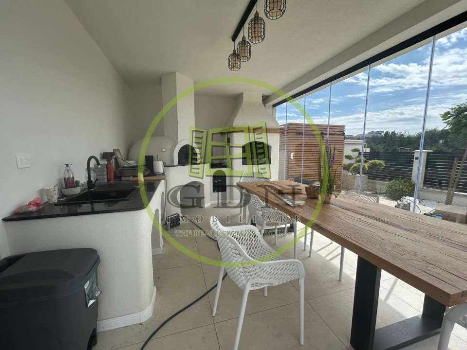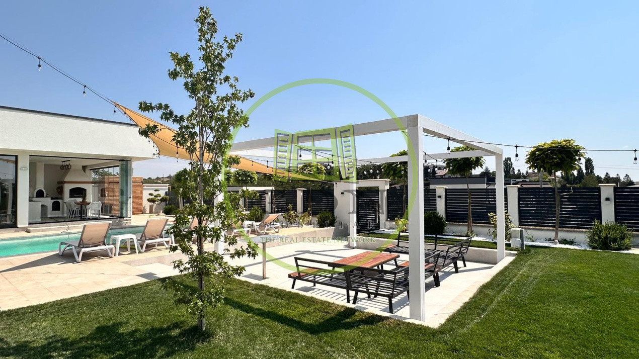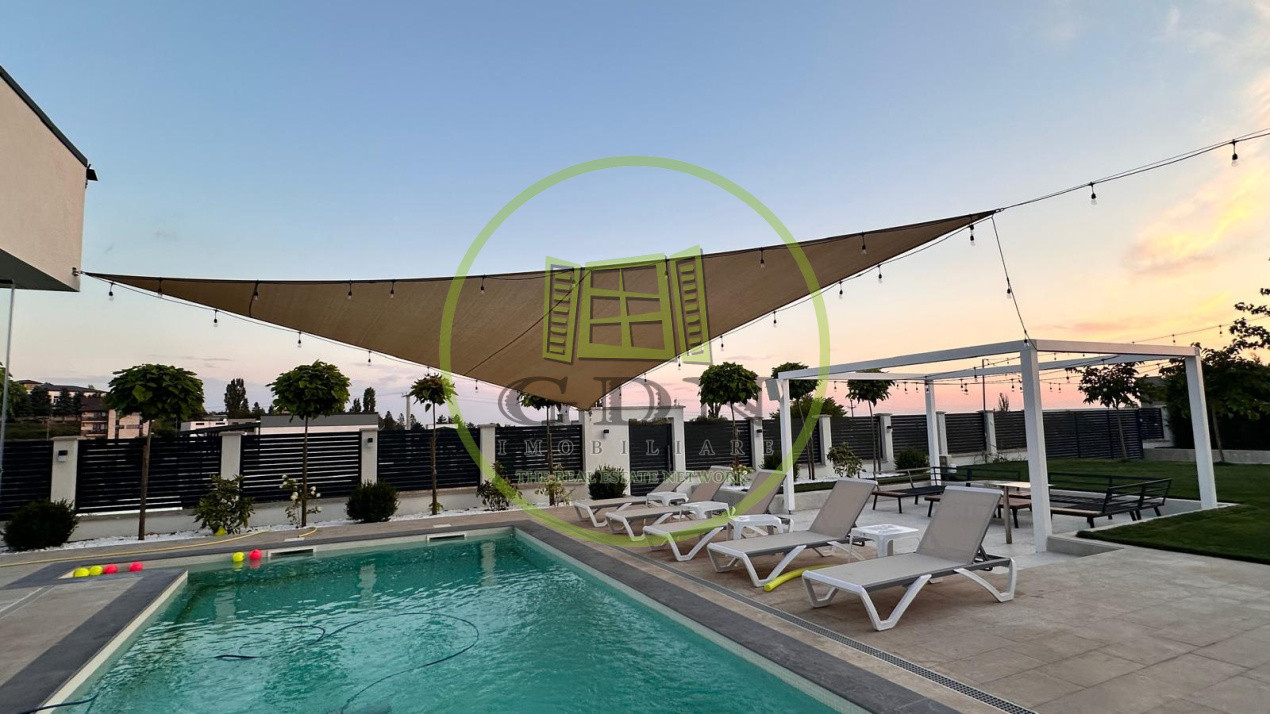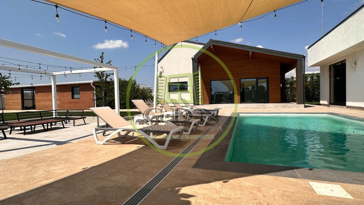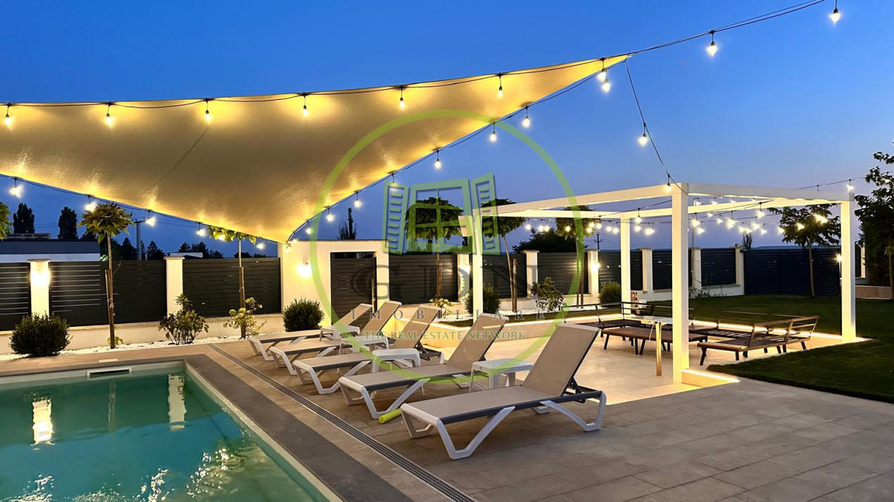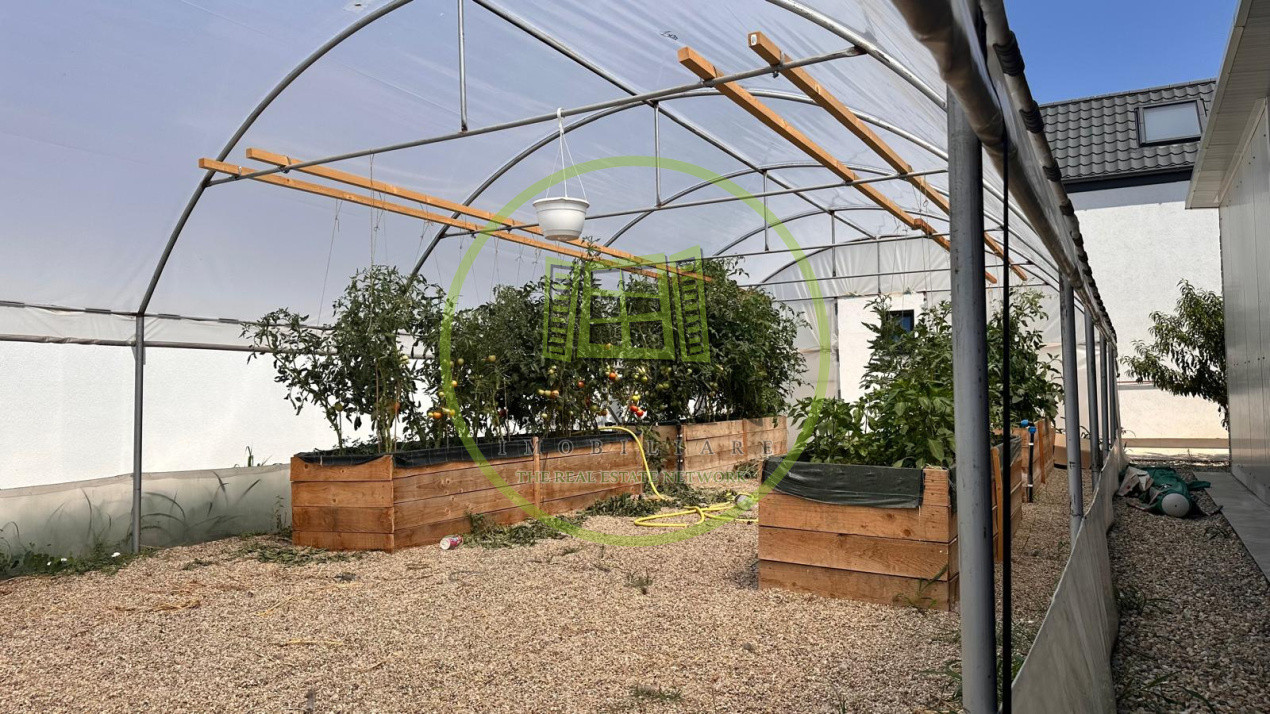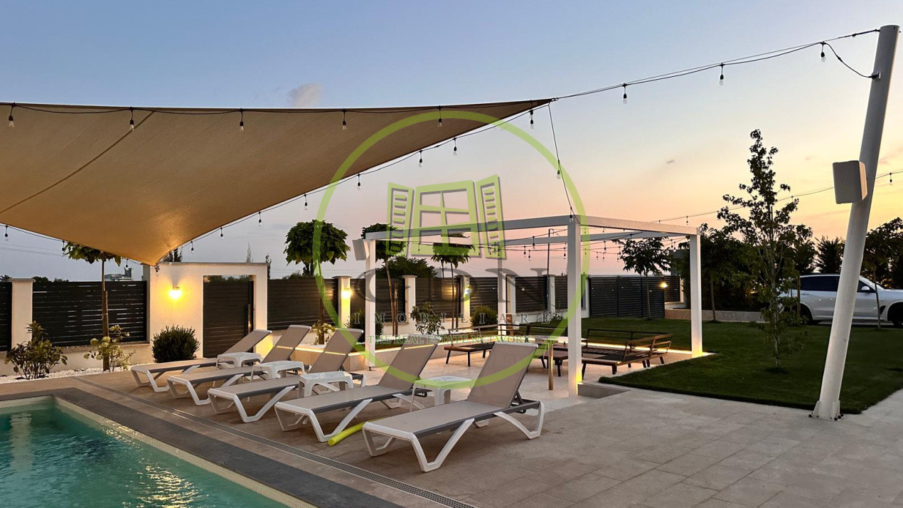 De asemenea, imobilul dispune de o piscina mare exterioara , o zona de sezlonguri si o anexa de depozitare , dar si un solar pentru legume in partea din spate a terenului.Proprietatea dispune de toate utilitatile, incalzirea se realizeaza prin pardoseala, prin centrala cu gaz, dispune si de doua puturi forate ( unul dintre acestea special pentru piscina, aceasta fiind conectata la o pompa de caldura de ultima generatie ce permite setarea temperaturii dorite).