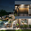 Fiecare proprietate are o compartimentare optimă, cu lumină naturală în toate camerele. Vilele dispun de piscină individuală de 24 mp., o grădină generoasă, garaj privat interior și 2 locuri suplimentare de parcare în curte. Acoperișul și fațada sunt izolate cu vată bazaltică de 15 cm pentru eficiență termică sporită. Materialele de construcție utilizate sunt durabile și sustenabile – cărămidă Cemarcom 25 cm, structură cadre b.a.
