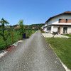 Curte amenajată cu gazon și pomi fructiferi