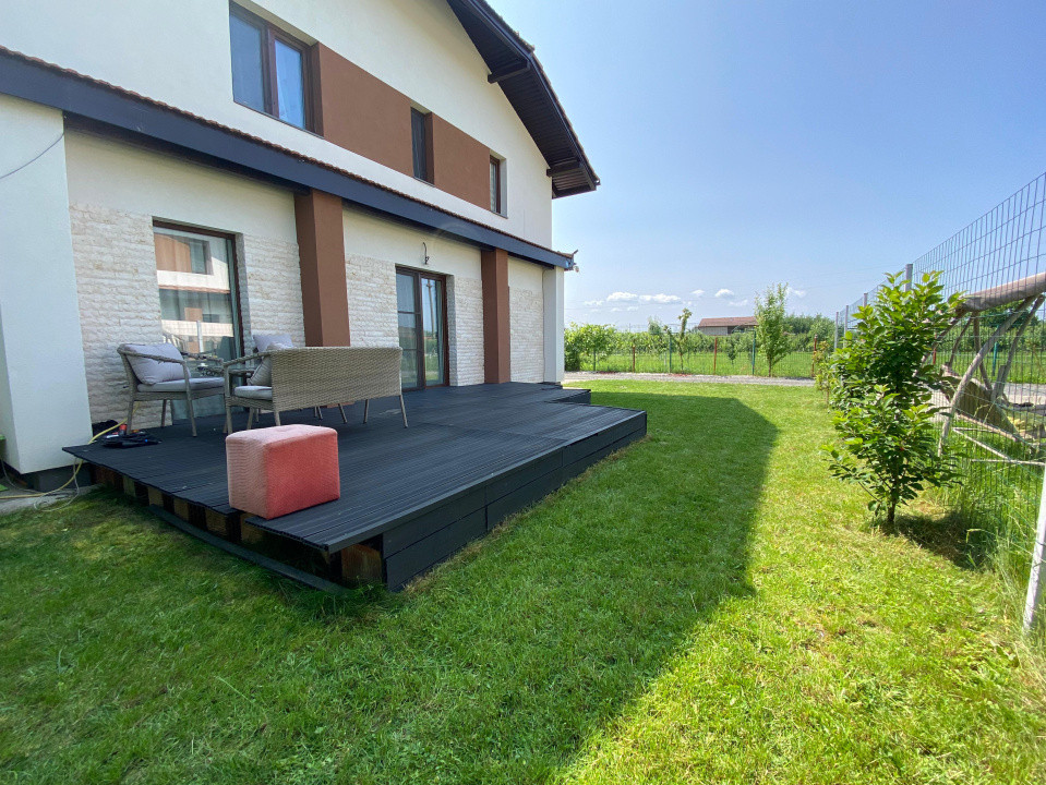 Casă modernă, construită cu materiale de calitate superioară, ideală pentru o familie care caută confort, intimitate și siguranță într-un cadru liniștit.