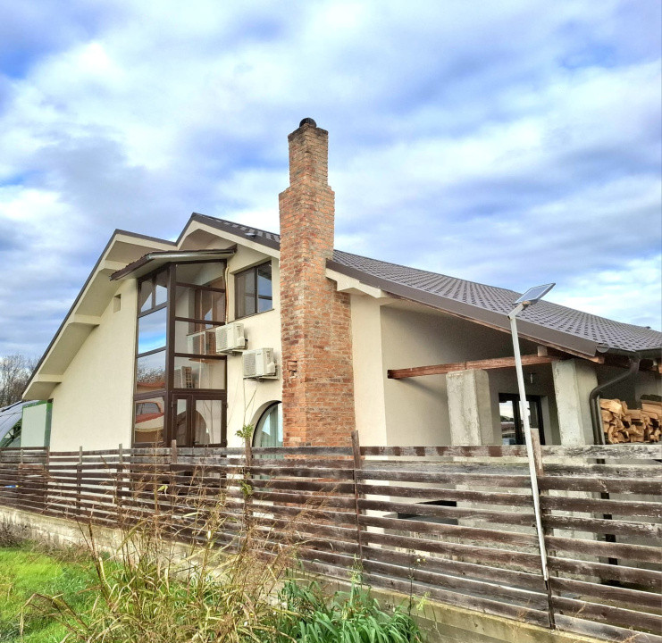 Locuința se va preda viitorului proprietar la stadiul finisat și complet mobilată. Printre dotări se regăsesc:incalzire in pardoseala,centrala pe peleti, ferestre termopan tripan , șemineu pe lemne in living ,ușă metalică, interfon, sistem de monitorizare video, centrală termică, instalație de aer condiționat, electrocasnice, electronice, apă fibră optică, decorativa San Marco, curte spațioasă și bine amenajata