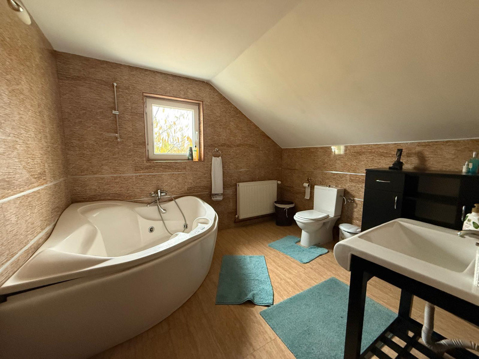 Locuinta se remarca prin soliditate, eficienta energetica si atentia la detalii. Imobilul este dotat cu tamplarie din termopan, centrala termica proprie, fosa septica si put forat.