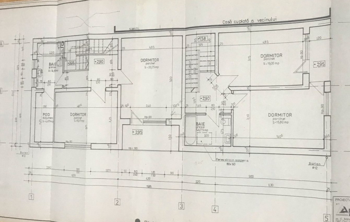 Terenul de care dispune proprietatea este de 800 mp, iar suprafața construită desfășurată este 359 mp, structurată pe 3 nivele de cate 160 mp:
