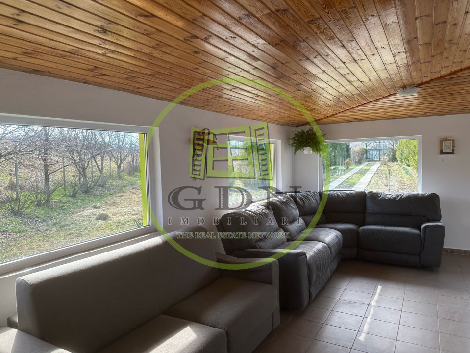Vand casa individuala 128 mp utili, 4750 mp teren, front stradal 100 mp liniari, constructie 2019, P+1, balcon acoperit 5mp, materiale folosite BCA+lemn+polistiren, izolata, termopan, centrala termica, apa, canalizare, curent trifazic, acoperis tabla verde padure, anexe, magazie lemne+magazie depozitare, cuptor de paine, piscina, lac de pesti, livada pomi fructiferi, gradina cu flori. Se vinde mobilata si utilata.