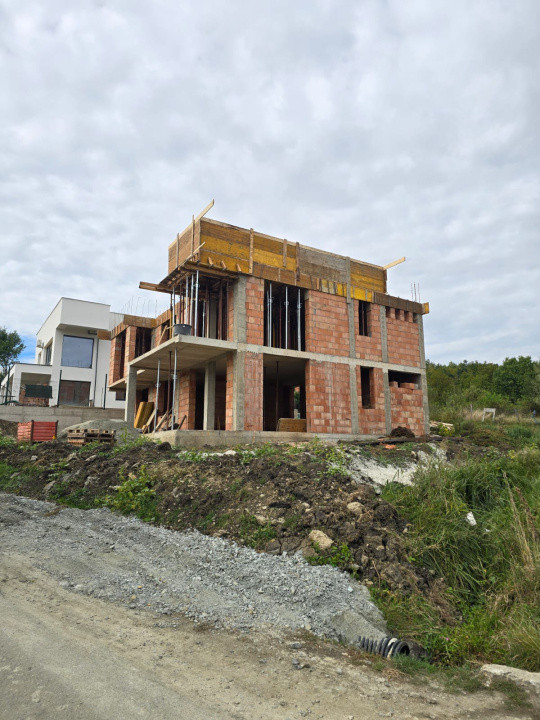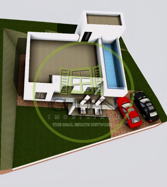 Casa este conceputa pe P+E+terasa circulara beneficiaza de o arhitectura contemporana, cu linii moderne si dotari premium, inclusiv o piscina suspendata de tip INFINITY, iesita in consola cu laterale de sticla cu vedere catre munti.