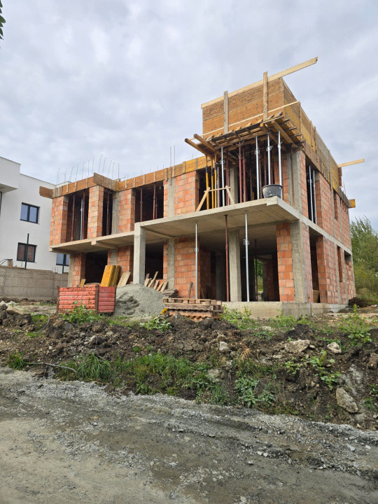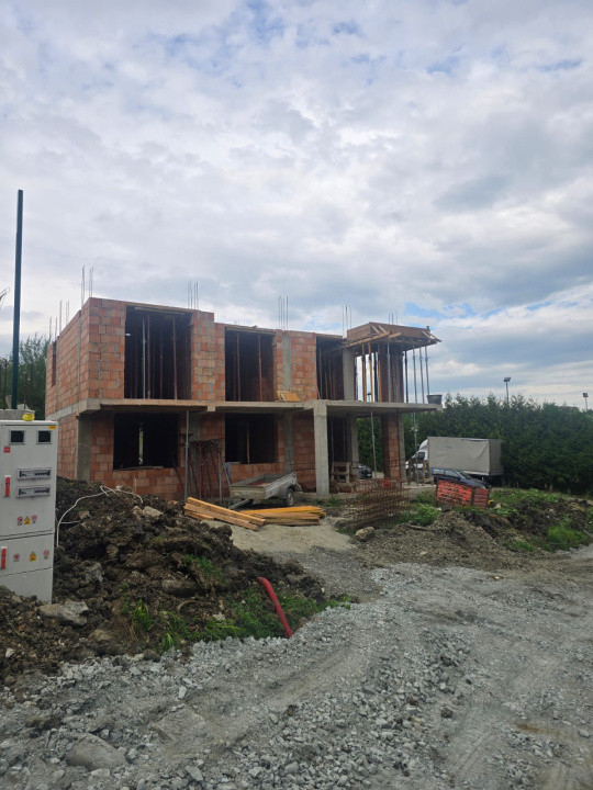 Casa se preda la rosu cu tamplarie termopan de ultima generatie, respectiv 3 foi de sticla, bagheta termica aluminiu, folie control solar, rulouri aluminiu, actionare electrica, feronerie ROTO, geamuri de 270 h.