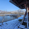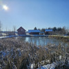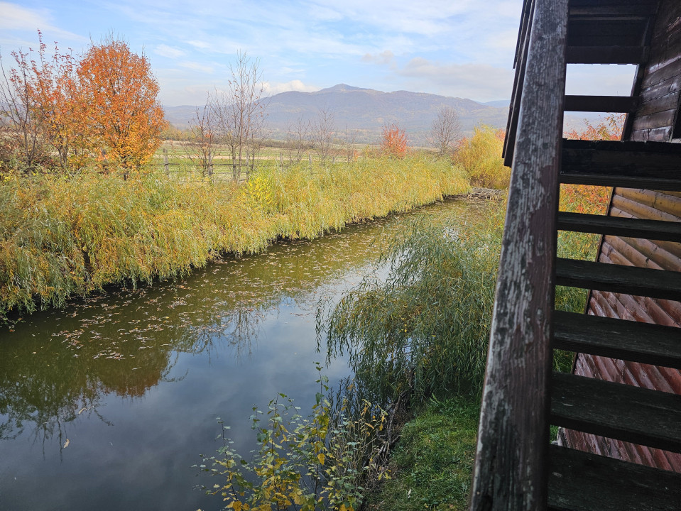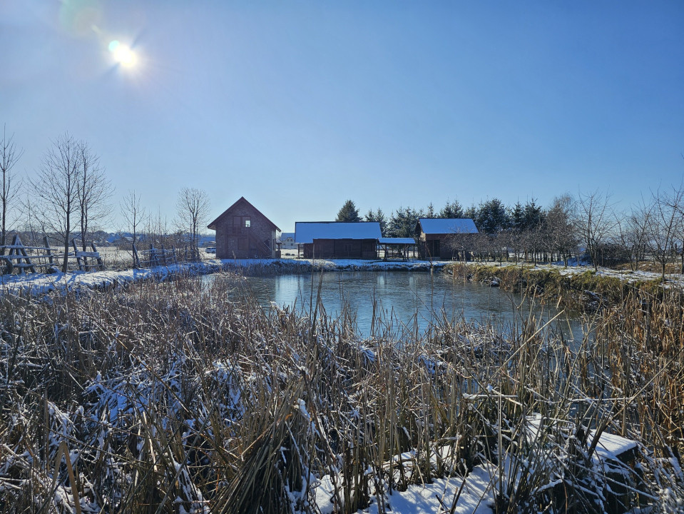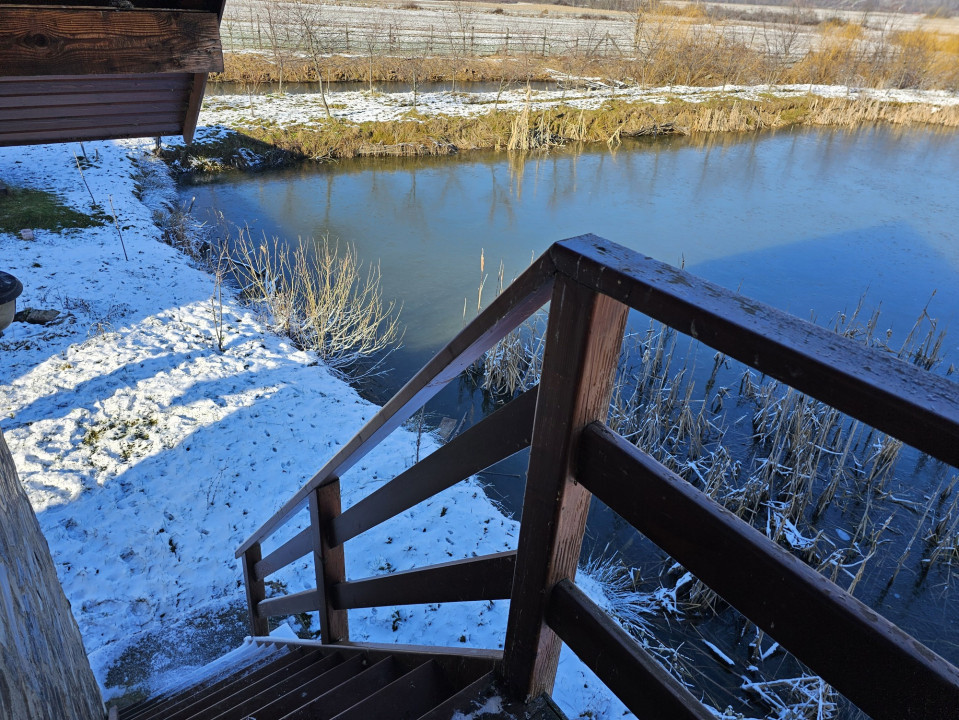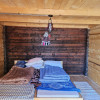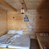 -două căsuțe din lemn fiecare cu baie proprie cu cabină duș și 2 dormitoare fiecare.