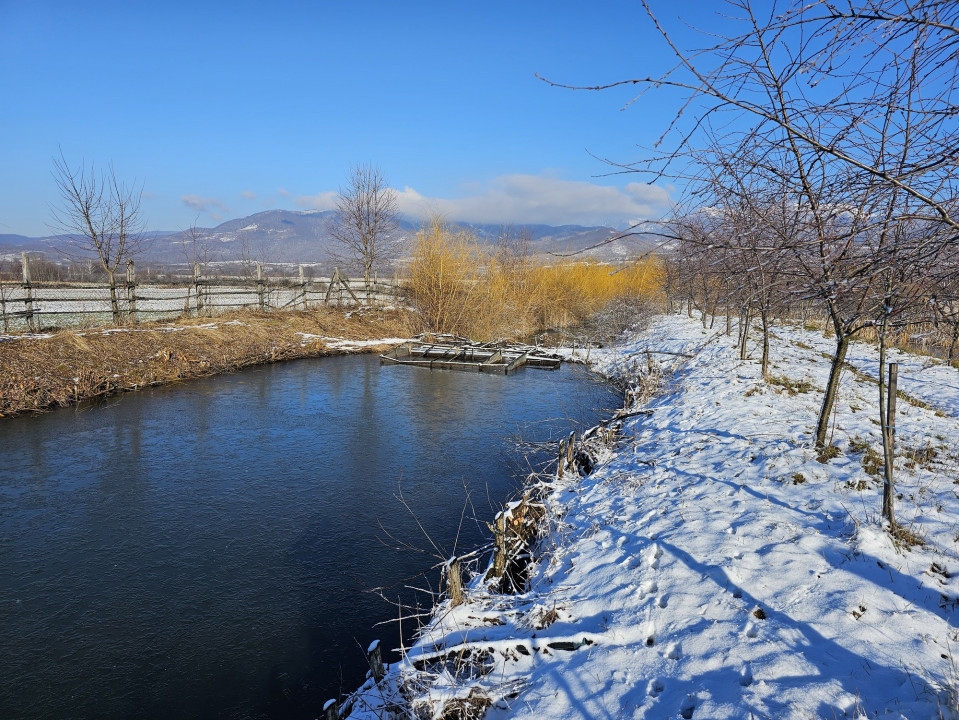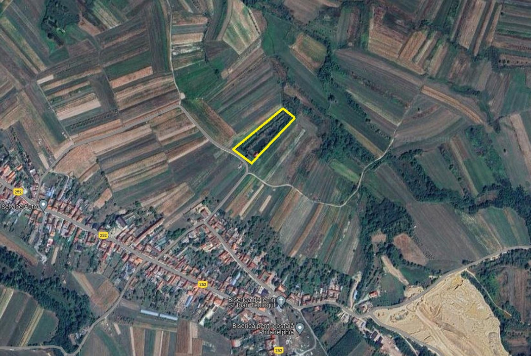 Terenul de care dispune proprietatea este de 7.384 mp, având un front stradal de 40 ml, amenajat cu gard din lemn. Pe teren sunt: 4 bălți de pește, populate cu crap și amur și diverși pomi fructiferi.