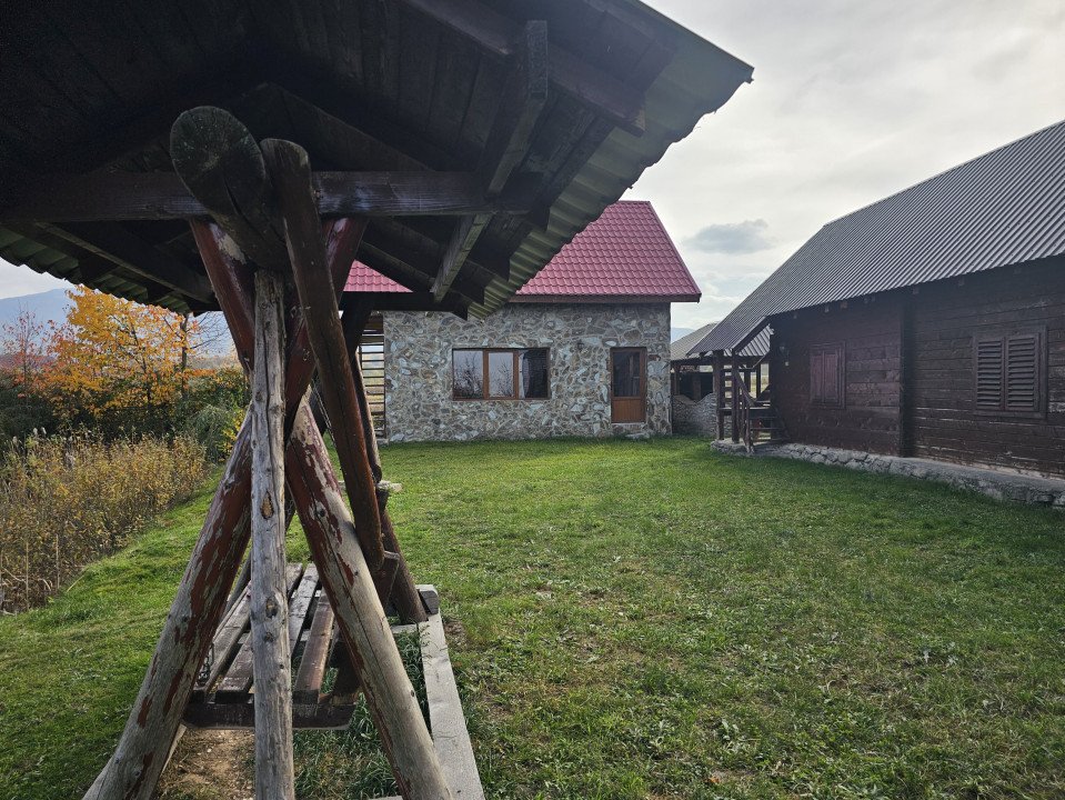 -casa principală este din cărămidă fiind comparimentată astfel: bucătărie, living și loc de servire a mesei cu o capacitate de 20 persoane, două dormitoare la mansardă,