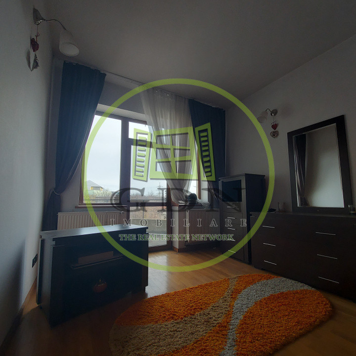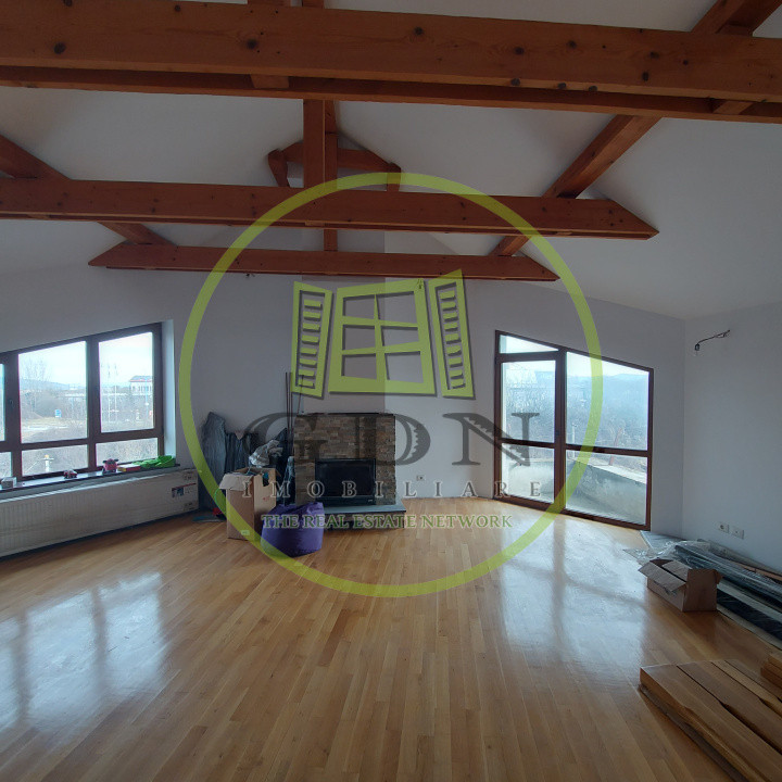 Dispune de centrala termica si contorizare separata pe nivel, curent trifazic, apometre pe nivel, tamplarie PVC, suprafete vitrate mari pentru lumina naturala, semineu pe nivel, parchet din lemn masiv si tamplarie interioara din stejar.