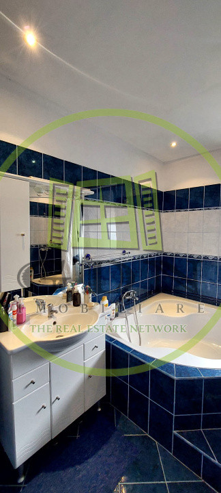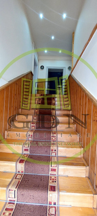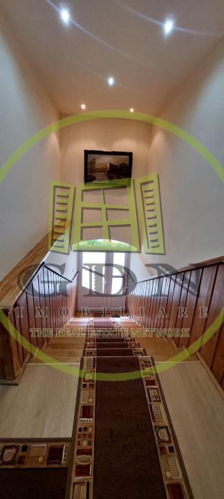 La etaj avem 5 dormitoare mobilate modern ,o baie foarte spatioasa dotata cu cada pe colt, dus, bideu, wc, chiuveta si geam de aerisire, un hol spatios de 10m lungime.