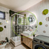 Parter - baie de serviciu cu duș; open-space modern cu bucătărie complet utilată + living cu TV și loc de luat masa; hol cu scară interioară spre următorul nivel; cameră tehnică și loc de depozitare