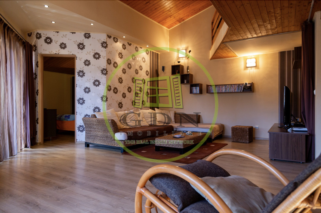 Mansarda, compus din un living, 4 dormitoare, 1 baie, terasa, scara interioara si biblioteca.