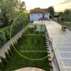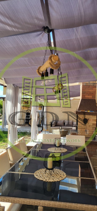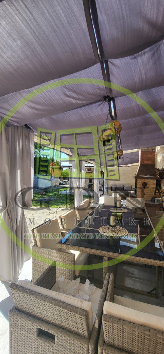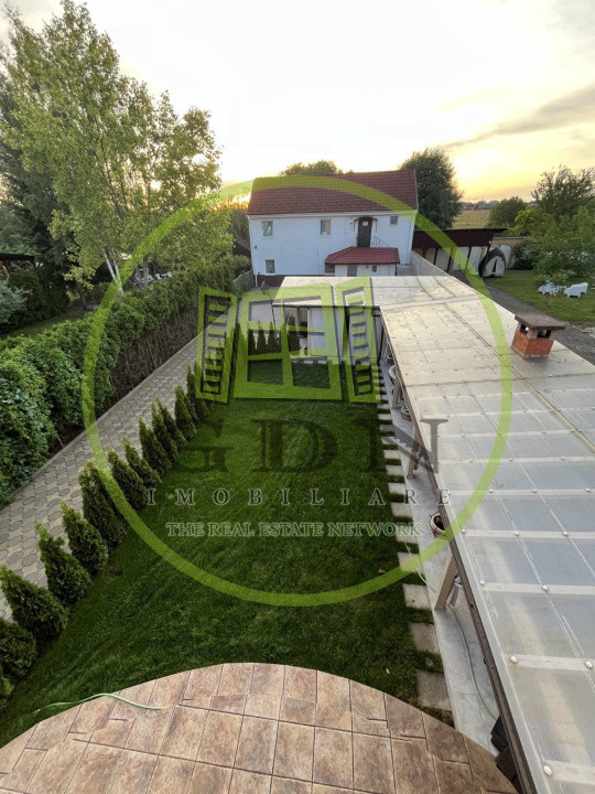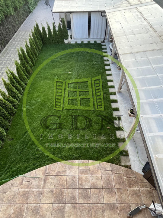 Curtea de 580 mp este un spațiu excelent pentru relaxare și divertisment, fiind complet pavată și dotată cu o terasă acoperită de 59 mp, grătar din cărămidă, masă pentru 12 persoane, canapea exterioară, cablu TV, internet și suport pentru TV. Gazonul de 60 mp completează acest spațiu verde de relaxare, iar cele 5 locuri de parcare asigură confortul deplin pentru rezidenți și oaspeți, 3 locuri alocate imobilului.