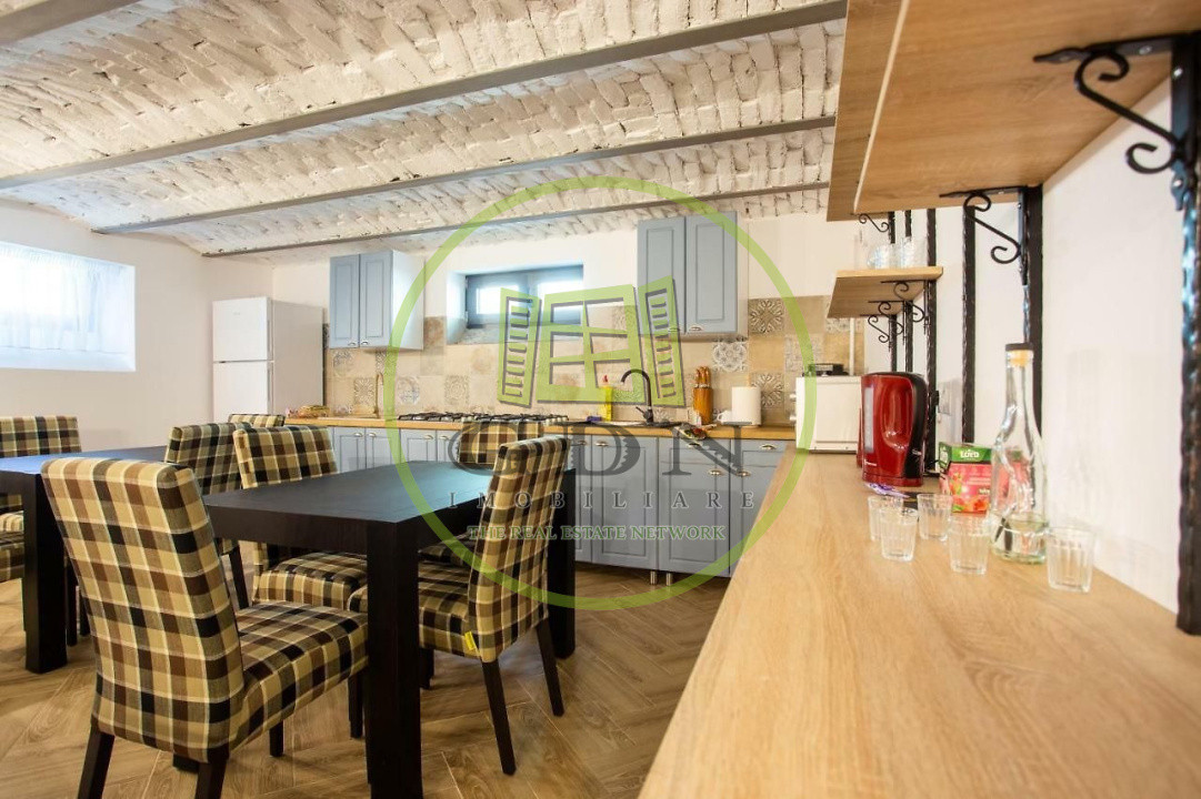 • Bucătărie profesională, complet utilată și mobilată – spațioasă, ideală pentru servirea oaspeților