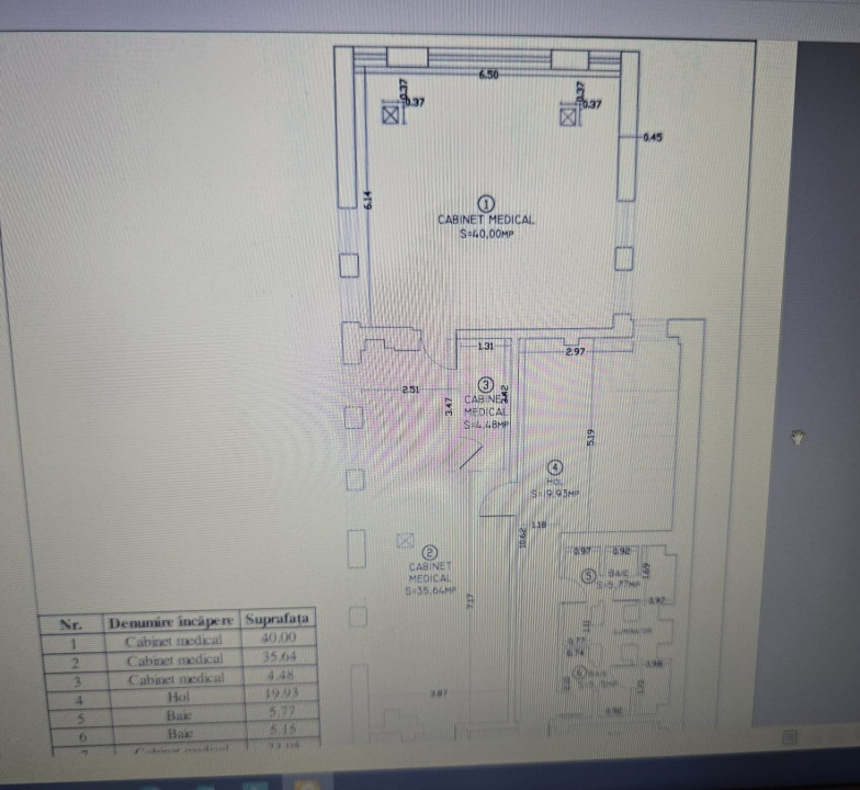 - la etajul I: 2 încăperi de cate 40 mp cu destinația birou sau cabinet