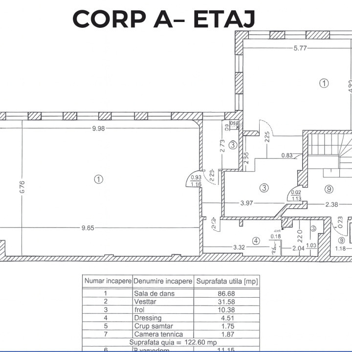 Clădirea este compusă din două corpuri alipite, cu o suprafață utilă totală de 950 mp, amplasate pe un teren proprietate exclusivă de 592 mp.