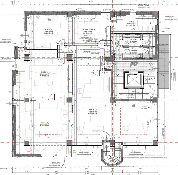 Spațiul are o suprafață utilă de 300 mp, are compartimentare flexibilă. Preț: 12,5 mp + TVA