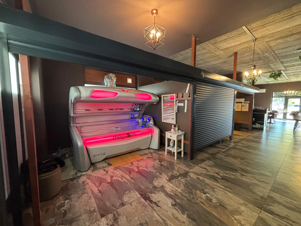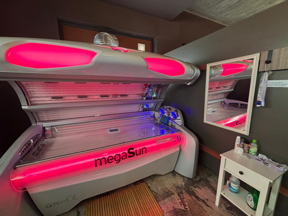 • trei cabine de bronzare dotate cu aparate de ultimă generație (tehnologia Mega Sun)